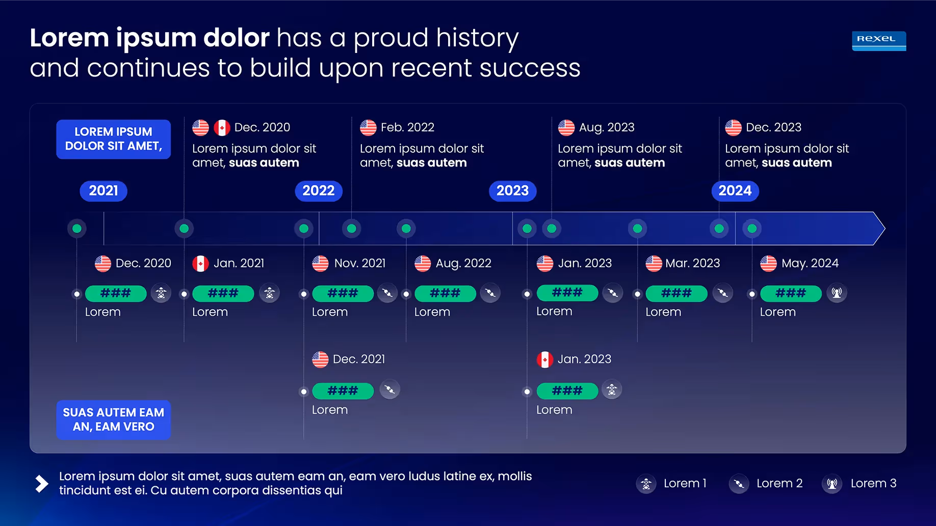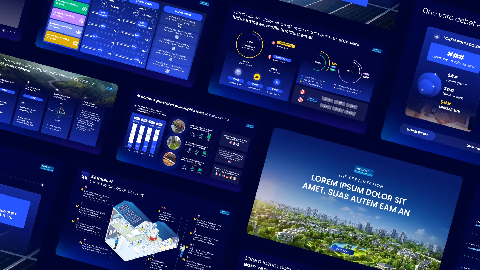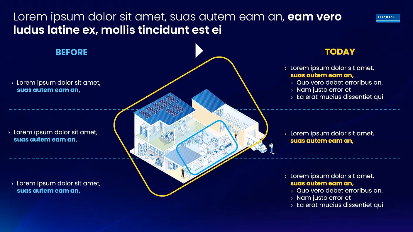 Creation of a serious and modern graphic universe, faithful to the image of REXEL. Association of deep blue with electric colors for a dynamic rendering. Visual staging that reinforces the perception of innovation and reliability.