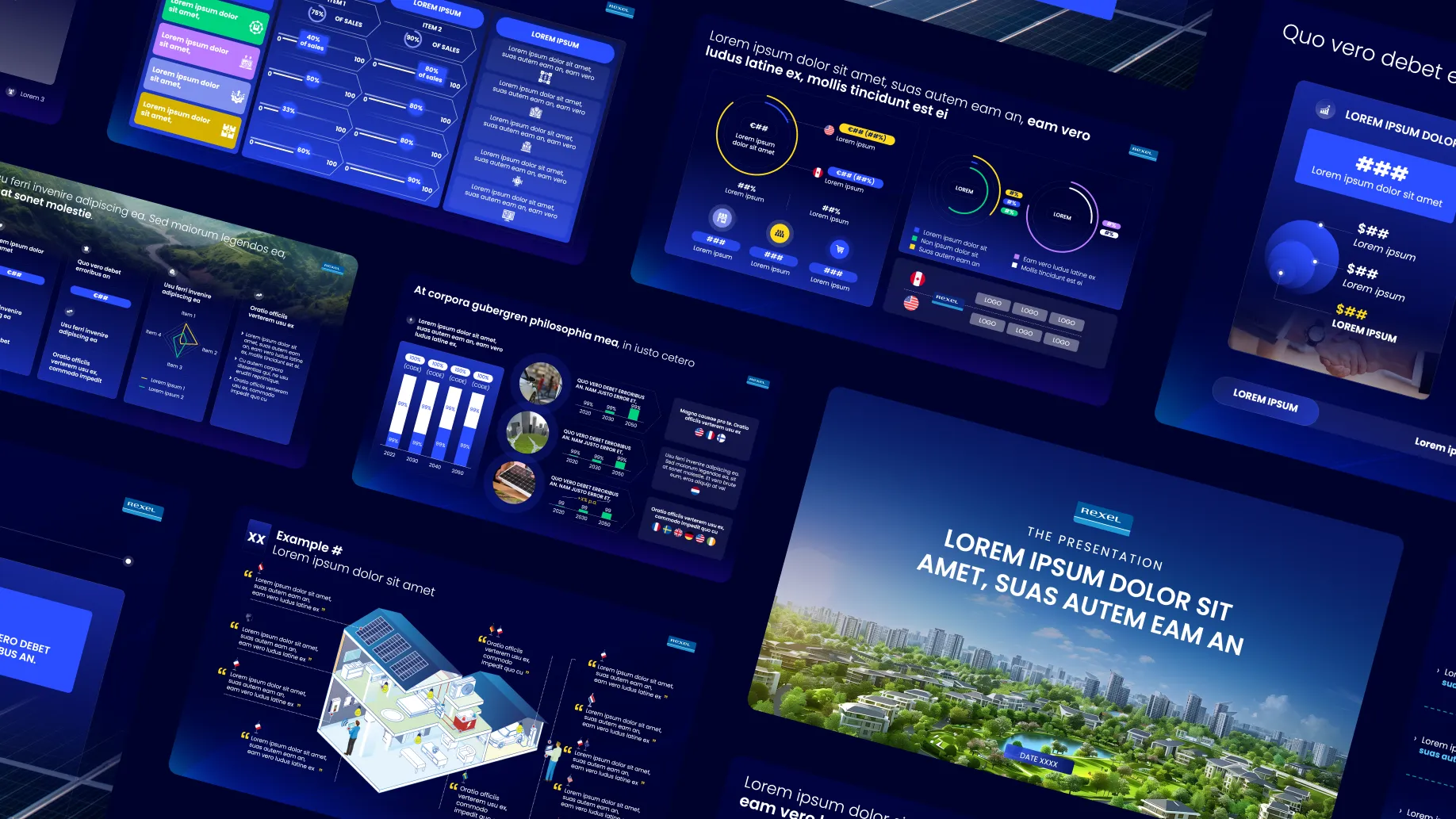 Création d’un univers graphique sérieux et moderne, fidèle à l’image de REXEL.